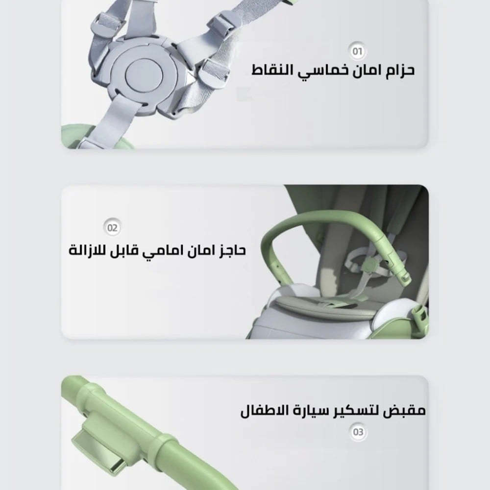 • حزام أمان خماسي النقاط يوفر حماية إضافية لطفلك